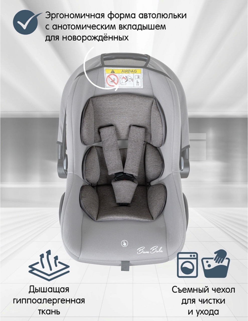 Автолюлька Bambola Bimbo группа 0+ (0-13кг) Серебро соты