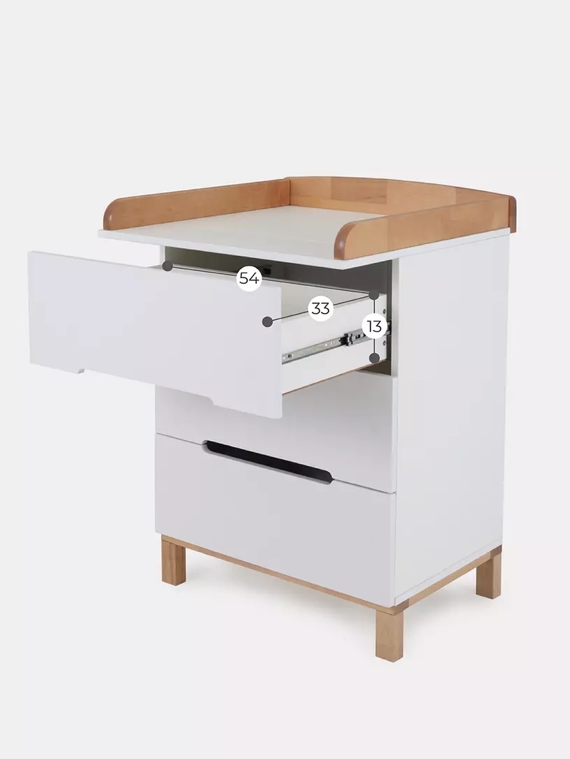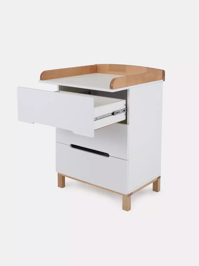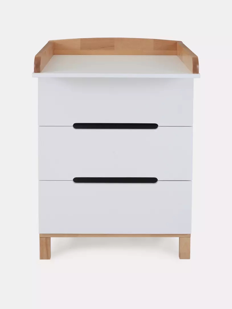 Пеленальный комодик, выполненный в лаконичном скандинавском стиле, станет настоящим украшением детской комнаты и выдержит серьезные нагрузки.